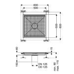 Sifon de pardoseală Ferrofix din oțel inoxidabil cu grosimea materialului de 2,0 mm (decapată în baia de imersie) este echipată cu creste vizibile lustruite, pante longitudinale și transversale, picioare pentru reglarea înălțimii și duze de evacuare din oțel inoxidabil. Profilul tăvii este potrivit pentru etanșarea rosturilor și are o margine adezivă circumferențială (15 mm adâncime și 50 mm pliată spre exterior) cu mitre sudate.