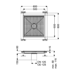 Sifon de pardoseală Ferrofix din oțel inoxidabil cu grosimea materialului de 2,0 mm (decapată în baia de imersie) este echipată cu creste vizibile lustruite, pante longitudinale și transversale, picioare pentru reglarea înălțimii și duze de evacuare din oțel inoxidabil. Profilul tăvii este potrivit pentru etanșarea rosturilor și are o margine adezivă circumferențială (15 mm adâncime și 50 mm pliată spre exterior) cu mitre sudate.