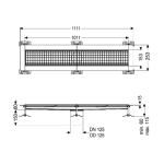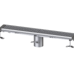 Canalul de scurgere Ferrofix din otel inoxidabil cu grosimea materialului de 2,0 mm (decapat in baia de imersie) este dotat cu bare de vizor lustruite, pante longitudinale si transversale, picioare pentru reglarea inaltimii, distantiere sudate pentru asigurarea gratarelor si cu duze de evacuare realizate. din oțel inoxidabil. Profilul canalului este potrivit pentru etanșarea rosturilor și are o margine adezivă circumferențială (15 mm adâncime și 50 mm pliată spre exterior) cu mitre sudate.