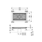 Canalul de scurgere Ferrofix din otel inoxidabil cu grosimea materialului de 2,0 mm (decapat in baia de imersie) este dotat cu bare de vizor lustruite, pante longitudinale si transversale, picioare pentru reglarea inaltimii, distantiere sudate pentru asigurarea gratarelor si cu duze de evacuare realizate. din oțel inoxidabil. Profilul canalului este potrivit pentru etanșarea rosturilor și are o margine adezivă circumferențială (15 mm adâncime și 50 mm pliată spre exterior) cu mitre sudate.