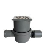 Sifon pardoseala KESSEL cu intrare si iesire laterala DN50 articulata la unghi, cu gratar inox, sistem antimiros garda de apa, cu posibilitate trece lavoar